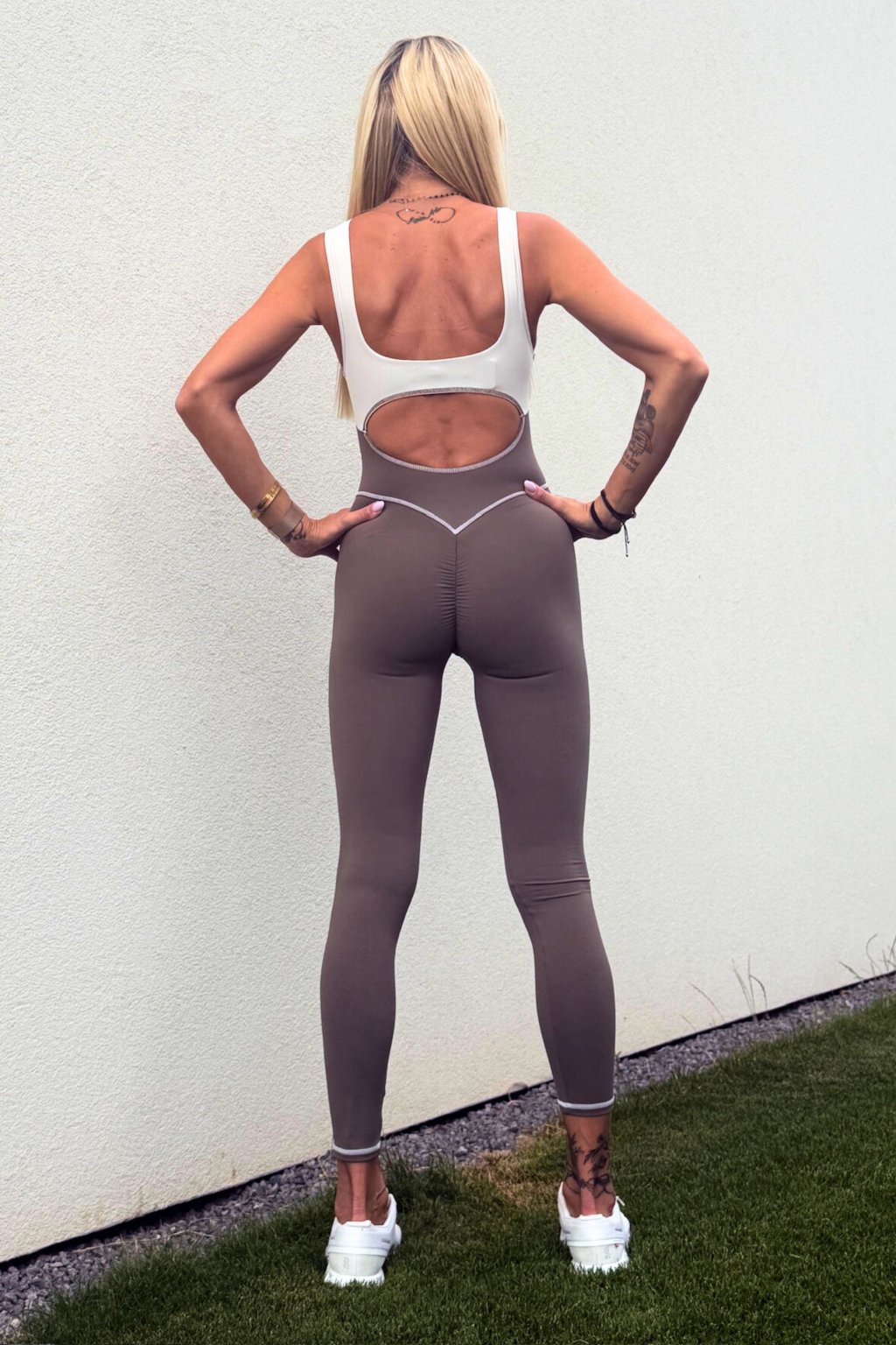 Overal, ktorý spája ženskosť s nespútaným duchom. Svetlý top so zipsom v kombinácii s kontrastnou tmavšou časťou v páse vytvára harmonický, ale výrazný look – ideálny pre ženy, ktoré sa neboja vybočiť z davu.